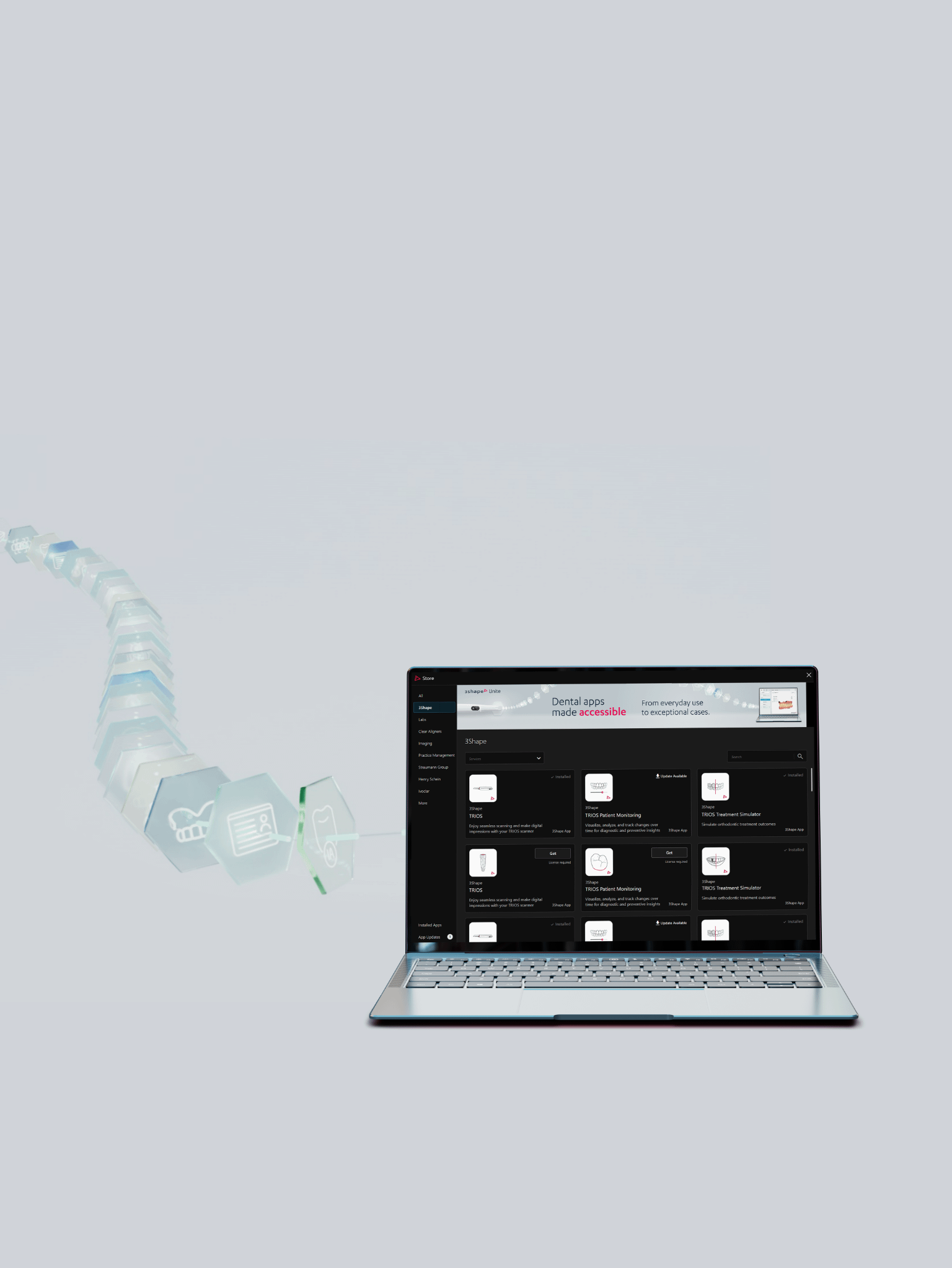 成为 3Shape Unite 操作系统的一部分,即可与数百家一流的牙科公司共同在 Unite Store 提供服务。