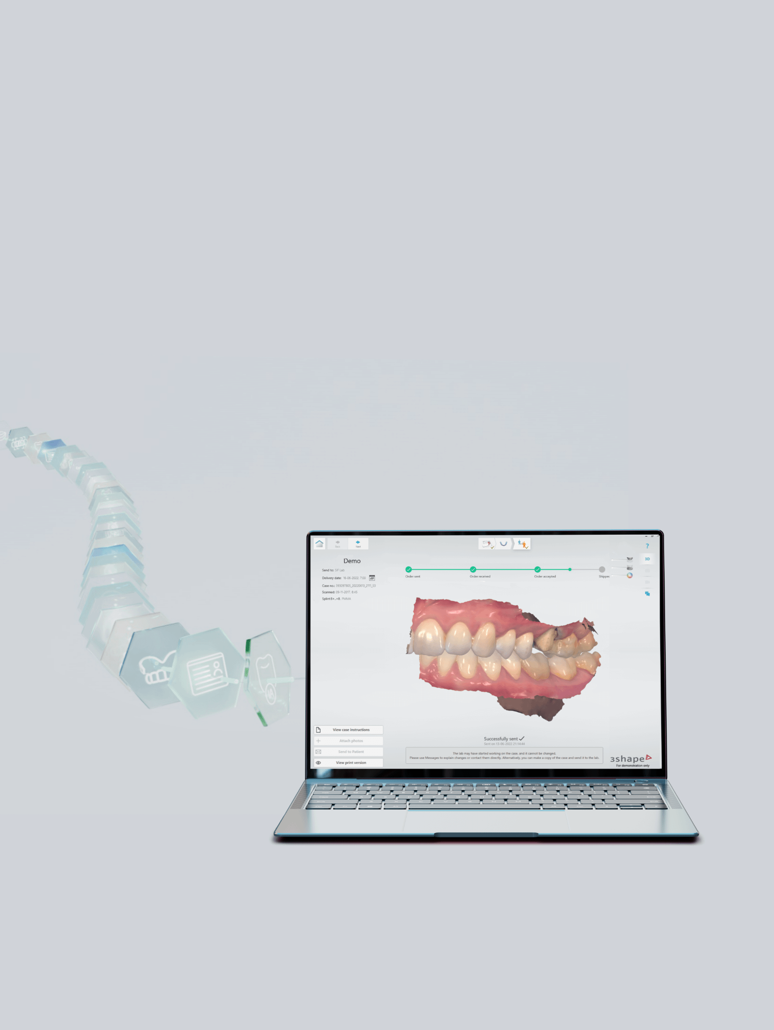 3Shape Unite 是一个开放的平台,可让您根据自己的需求定制数字化牙科的工具,包括扫描并发送到技工所的工作流程、使用 3Shape 或其他合作伙伴的应用程序在诊所内进行牙科治疗或者两者组合使用。